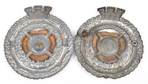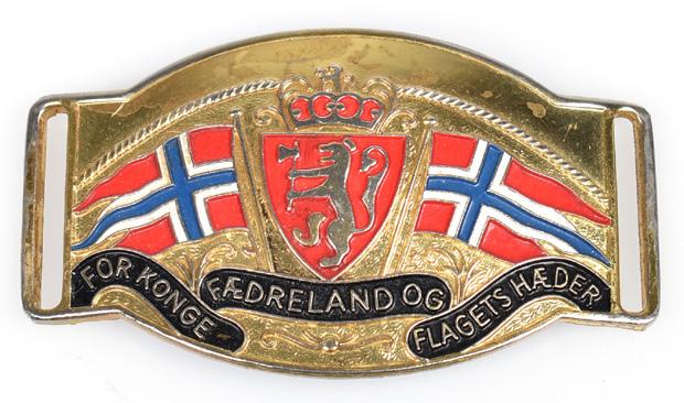 53 Lott to maritime medaljer. En Halden motorbåtforenings ridderorden, ”Den gyldne gnist”. Emaljert og i sølv, med påmontert bånd. Ø=4,2 cm. En nål fra M/S Sanct Svithun Stavanger, med rederiflagg, Ø=3,5 cm.