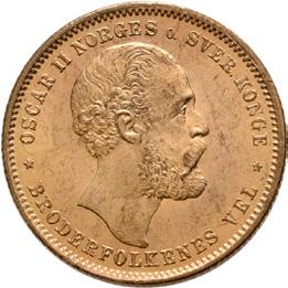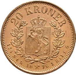 9 20 kr gull 1876, kv. 1+. (AGW; 0.2592 oz./8,06 gram rent gull).