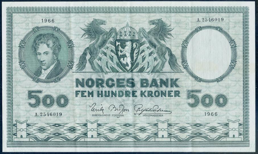43 500 kr 1966 A, kv. 1+. Tape spor høyre side (4000).