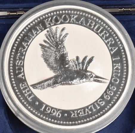 23 AUSTRALIA. 30 Dollars silver 1996 Kookaburra. Huge 1 kilo pure silver bullion coin in BU condition. Comes in original clam-shell case.
