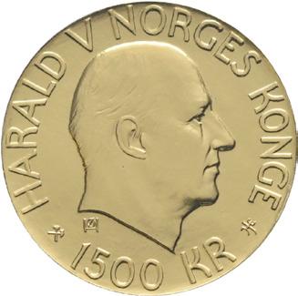 3 1500 kr 2005 Hundreårsmarkeringen i gull. Vekt 16,96 gram 917/1000 (1/2 oz / 15,5 g rent gull). Eksklusivt treskrin etui m/sertifikat.