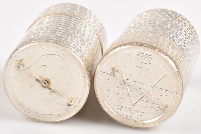 2 25 kr 1970 Frigjøringen x 40 stk i 2 originale plastrør. 29 gram 875/1000 - netto 25,37 gram sølv og totalt 1015 gram rent sølv. Kv. 0.