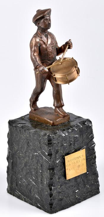 1640 SAMLEESKE. Esken med det rare i. Gullbelagt fat i 24 karat BMFN. Haugesundfat, signert Arol, Ølhøne med Norge tekst, Husfliden. Lite Engø fat. Indianerplatte i messing, signert E.Geiselman 1914 + lite hode i stein m/noen skader, sort eldre telefon med tallskive + lite Bavaria stettefat.