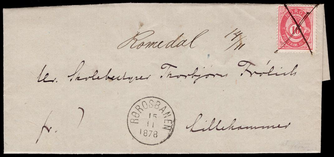 8742 Stappet pocketalbum med langt over 100 eldre forsendelser posthorn (rundt 150 stk.), inkl. en del røde stolpemerker. Ganske blandet kvalitet, fra svake med betydelig anm., til fine, en del var. på stempler. Singel 39 til Frankrike på svært shabby omslag. Noen reisende stpl., noen firmalogoer osv. Det aller meste før 1920.