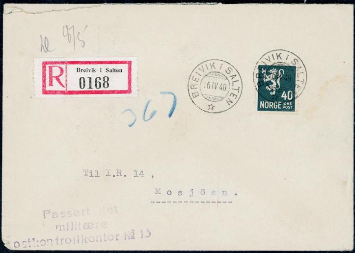 8739 Lott drøyt 50 enheter fra slutten av 1800-tall til nyere. En del artig innhold, bl.a. Frimerke-postkort (brukt til Tyskland 1906), postkort adressert til Portugal og Brasil, Telegram-konvolutt (NK 221), konvolutt 70 øre FN (NK 658) annullert med svensk stempel, to sensurerte brev til Brasil (1940), 27 øre rek-trykksak porto 1940, osv. Omfatter en del FDC 1940-tall og 1960-tall, samt en del konvolutter 1940-tall som har unngått avstempling.
