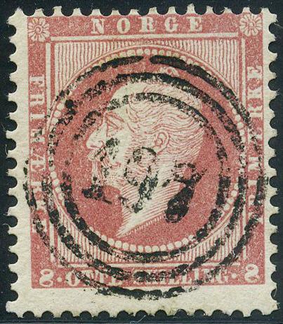 8709 o Innstikkort med ca. 20 skillingsmerker, inkl. NK 5, 10 x2, 13, 15, 16 Ib,, og mange 18. Et par kval.anm., og flere upene stempler. Gammel notering fra HK ca. 4000,-.