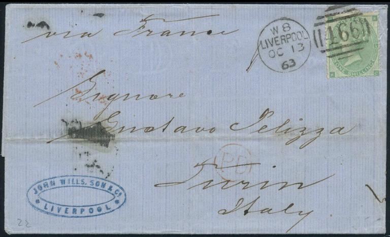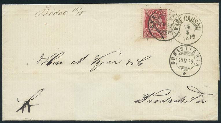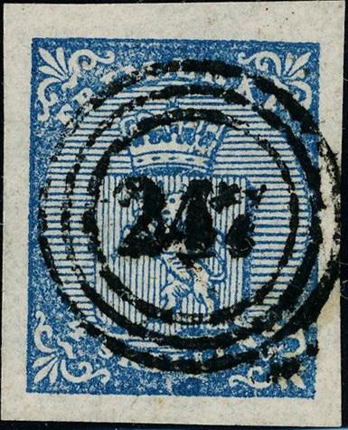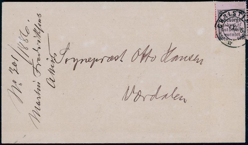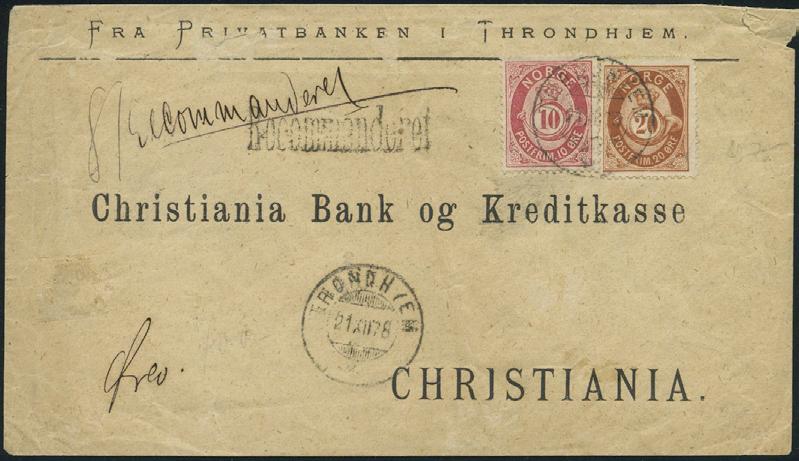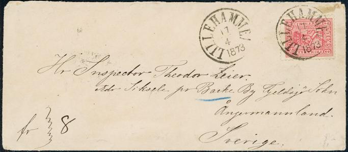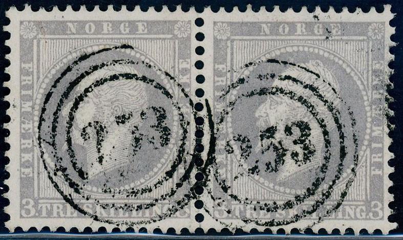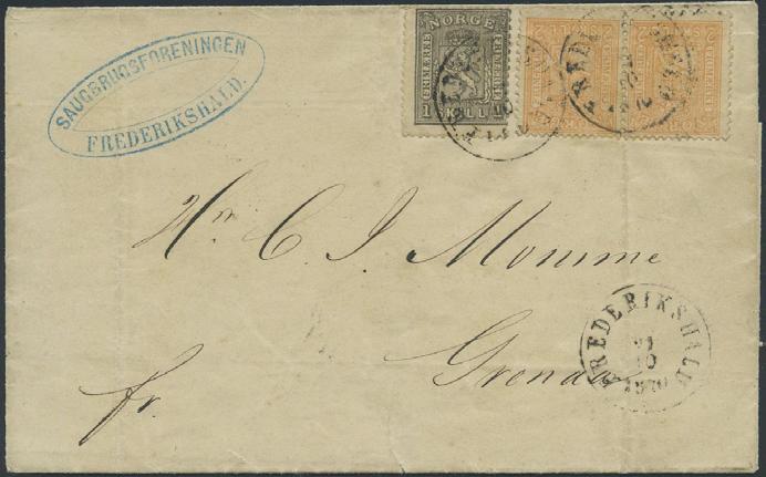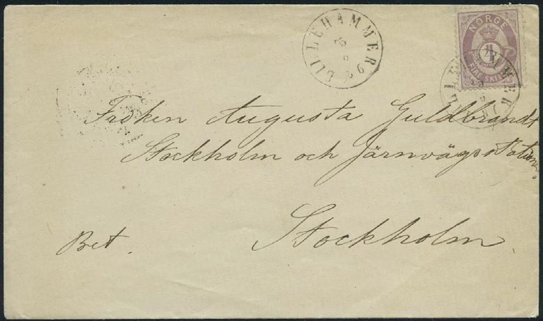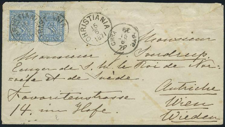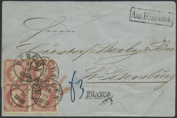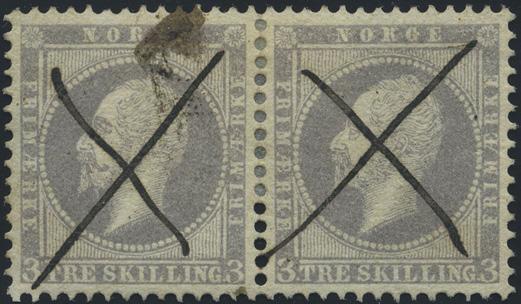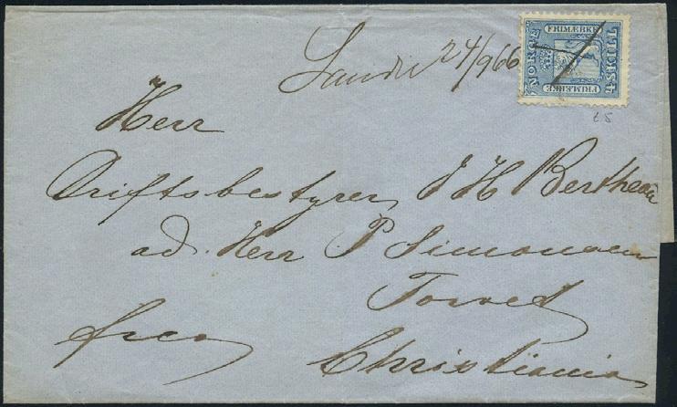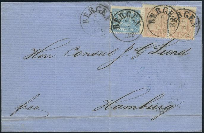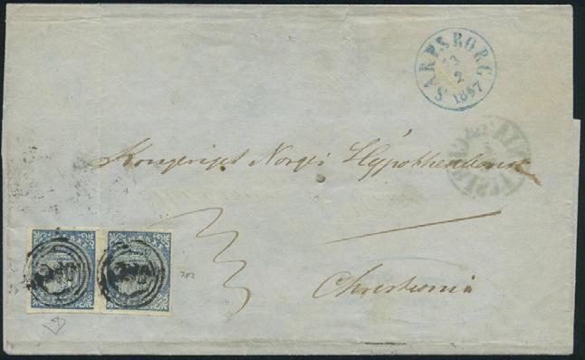 2696 15 skillingsbrev og 2 ørebrev - alle sendt til utlandet. Blant annet seks brev med 4 skilling Pothorn (flere plate I) sendt til Danmark og Sverige. De fleste av brevene og merkene er med kvalitesanmerkninger.