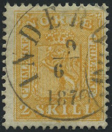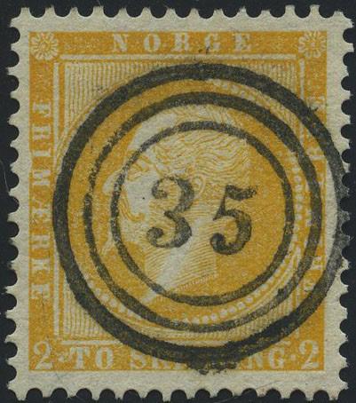 2669 o 2/21. SKILLINGSLOTT, 19 merker i normalkvalitet. Mange i grei, rundstemplet kvalitet. Ingen tynnheter, dvs. merketeknisk OK (9355). 1500