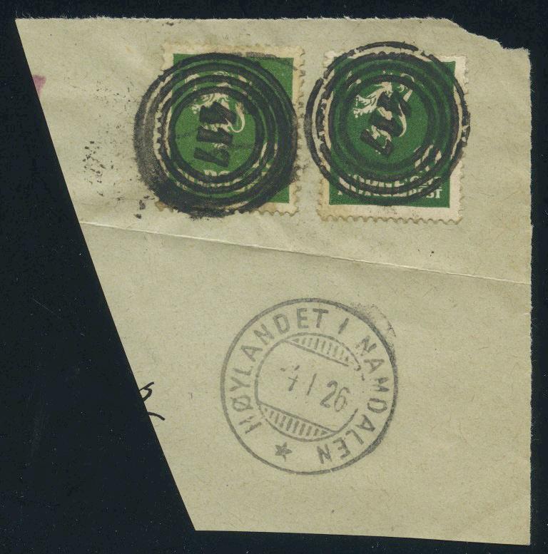 2709 IIL-STEMPLER. Ca. 70, mest eldre forsendelser, mye bra kvalitet på stempler og enheter. Bl.a. Raastad 1918, Vallø 1904, Vikebygd 1935, Hof i Land 1887 (her NK 53 med skade), Nordtorpen 1917, Halten 1925, Ise 1904, Holme 1913, Todalen 1930, Enger 1912 på postoppkravsblankett, m.m.