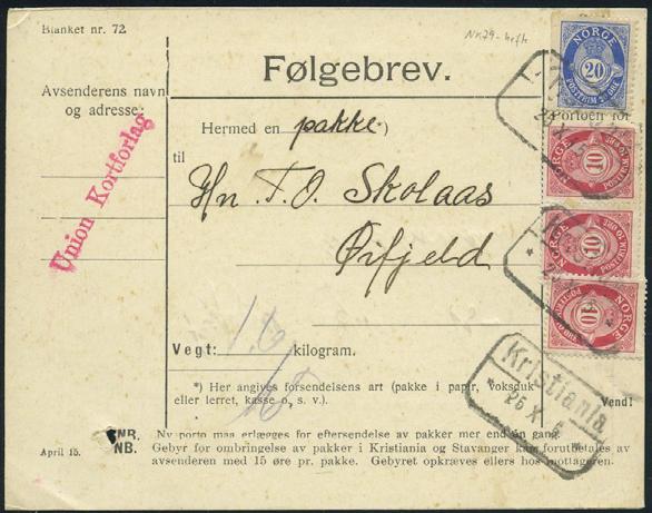500 2712 15 innenlandske forsendelser med skilling og øremerker.