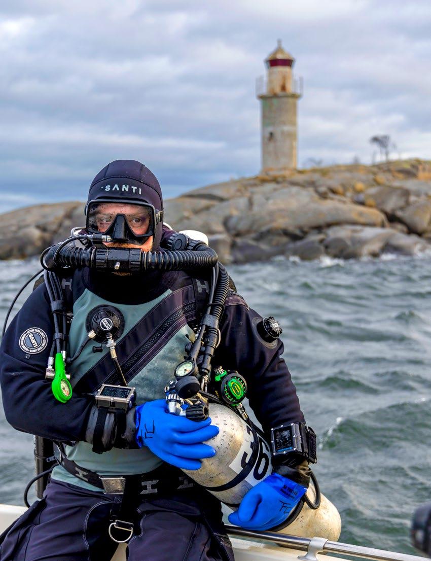 Jonas Eriksson rattar snipan mot dykplatsen. Han är båtägare och intresserad av det mesta inom dykning, han dyker gärna på vintern under isarna eller i vattenfyllda grottor. Som dykinstru ktör i Norrtälje dykklubb och med egen båt, besöker han ofta någon av alla de vrak som ligger gömda och förhållandevis välbevarade här i djupet.