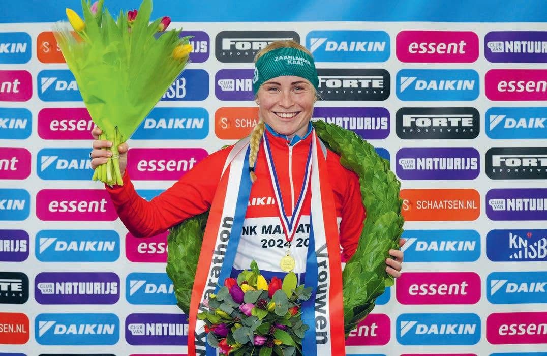 DJoy Beune kan voor het eerst een Nederlandse allroundtitel vieren. (Foto Neeke Smit)