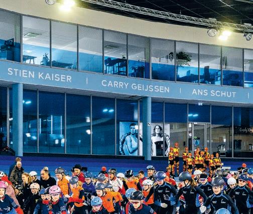 aorta. Daardoor heb ik iets minder conditie.’’ Ze vindt het mooi de schaatsers te helpen, zorgt dat ze onderweg eten en drinken krijgen. ,,Ik vind het echt vet dat al die schaatsers hier zijn, vastberaden om hun doel te halen. Dat is echt mooi. En ik ben heel dankbaar dat ik hierbij mag zijn.’’ Moeder Sjanie is blij dat ze in aanraking zijn gekomen met Stichting Hartekind. ,,We zaten in het ziekenhuis tijdens de levensreddende operatie van Suze toen mijn man een artikeltje las in een patiëntenblaadje. ‘Dat ga ik doen’, zei hij. ‘Schaatsen en geld ophalen om te zorgen dat zo min mogelijk mensen hoeven mee te maken wat wij hebben meegemaakt’. En kijk om je heen. We zijn niet de enigen die ons inzetten. En volgend jaar zijn we er weer.’’
