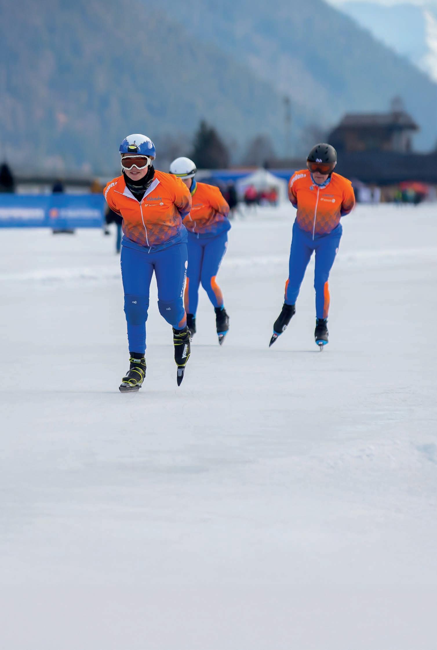 e vielen op, daar op de Weissensee in Oostenrijk. De roodwitte schaatspakken zag je al van ver. Rijders voor de Stichting Hartekind. Of beter gezegd: strijders. Want op het ijs van het bergmeer haalden ze alles uit de kast om hun steentje bij te dragen voor het onderzoek naar hartafwijkingen bij kinderen.