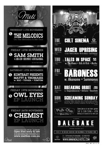 SYDNEY’S HOTTEST INDEPENDENT WEEKLY STREET PRESS Hitting the streets with the best music, culture and events, every Sunday evening. This week: Philadelphia Grand Jury, Winter’s Bone, Major Lazer, My Disco, Glenn Richards, The New Pornographers, The Vasco Era, Superchunk, Angela’s Kitchen, Cameras, Wons Phreely, Electric Wire Hustle, Edge Of Night and more