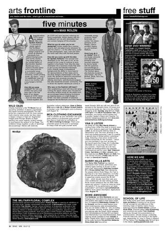 longside fellow COFA design grad Adrian Moore, Max runs Spoken Authors – a commercial design agency that facilitates community-based design projects and hooks up talented individuals from in different backgrounds diff with worthy causes. wit Their latest project is The the transformation of Marrickville’s Sashimi Ma Warehouse from a Wa massive disused space mas full of crazy junk into community venue a co that contains a gallery, workshop, screen-printing wor studio, gig space – and a stud 7m sskateboard ramp. All done in six months, with tiny budget of $7500. a tin WTF. WTF How did you guys connect? We met one conn another four and a half anoth years ago in the first week of our design degree at COFA. Since degr then we have always the worked together and w