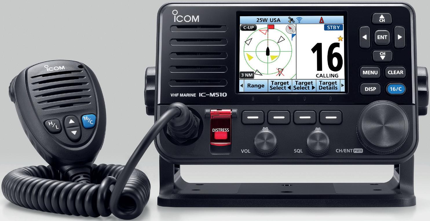 IC-M510E är den första av Icoms VHF-modeller som har inbyggd WLAN vilket gör det möjligt att ansluta upp till 3 smartphones för att hantera VHF-trafiken i din radio.