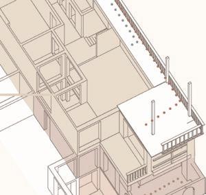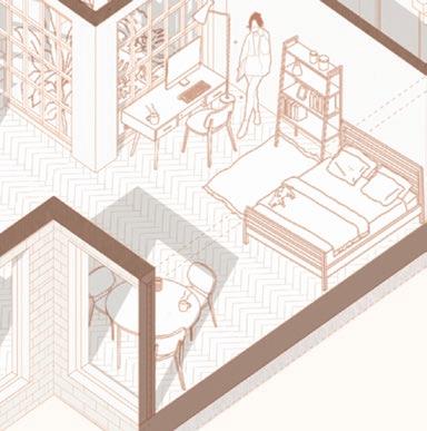 This project explores the concept of a “lifespan unit,” a single architectural scheme designed to adapt and evolve alongside a family’s needs throughout their lives. Presented here is an axonometric drawing, a three-dimensional visualization that allows for a clear understanding of the spatial organization.
