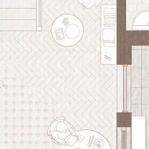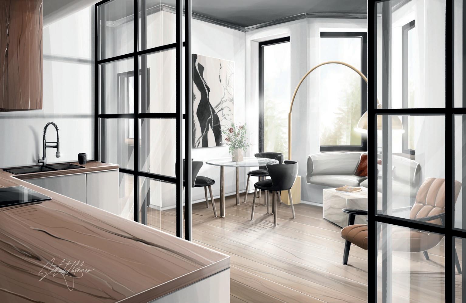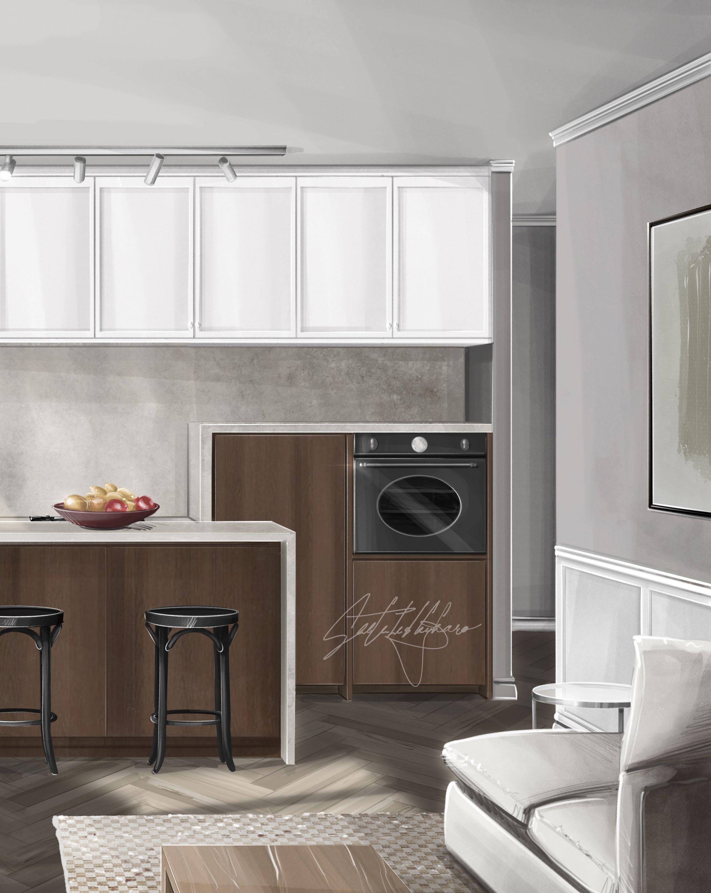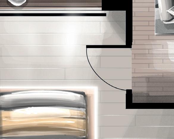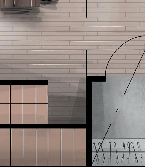 Perspectival section crafted entirely from scratch in Procreate. This method allows for meticulous attention to detail, resulting in a unique composition that captures the essence and atmosphere of interior spaces with unparalleled precision.