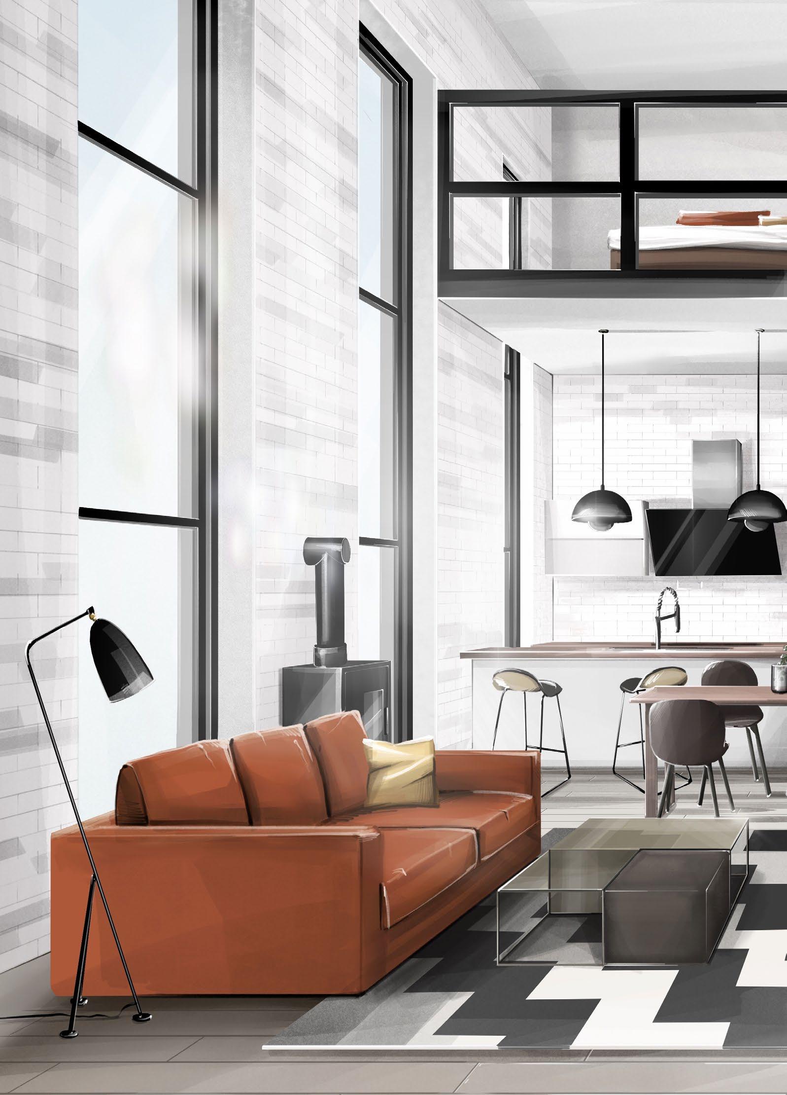 Unique, custom hand-drawn digital renderings showcasing the whole design project.