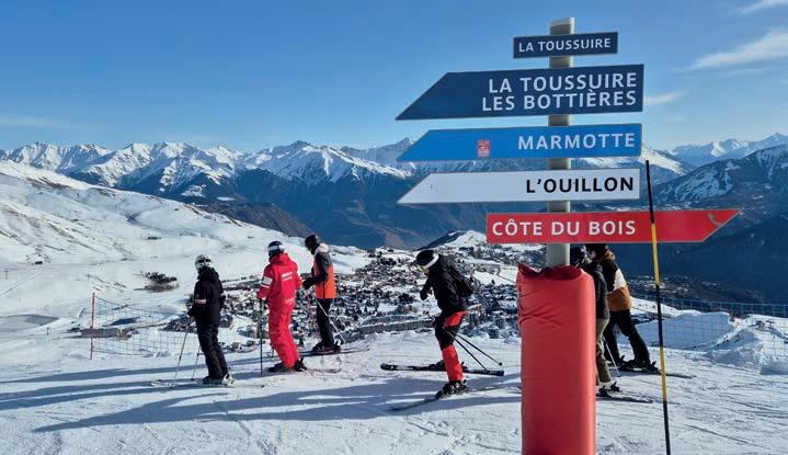 The difference between the village locations such as St Sorlin d’Arves and the high-rise modern aura of purposebuilt Le Corbier and La Toussuire is clear, but the runs in between are magnificent.