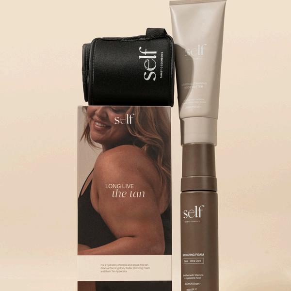 Purchase your choice of Bronzing Foam (Medium-Dark or Dark-Ultra-Dark) and Gradual Tanning Body Butter to receive a Tanning Back Applicator FREE