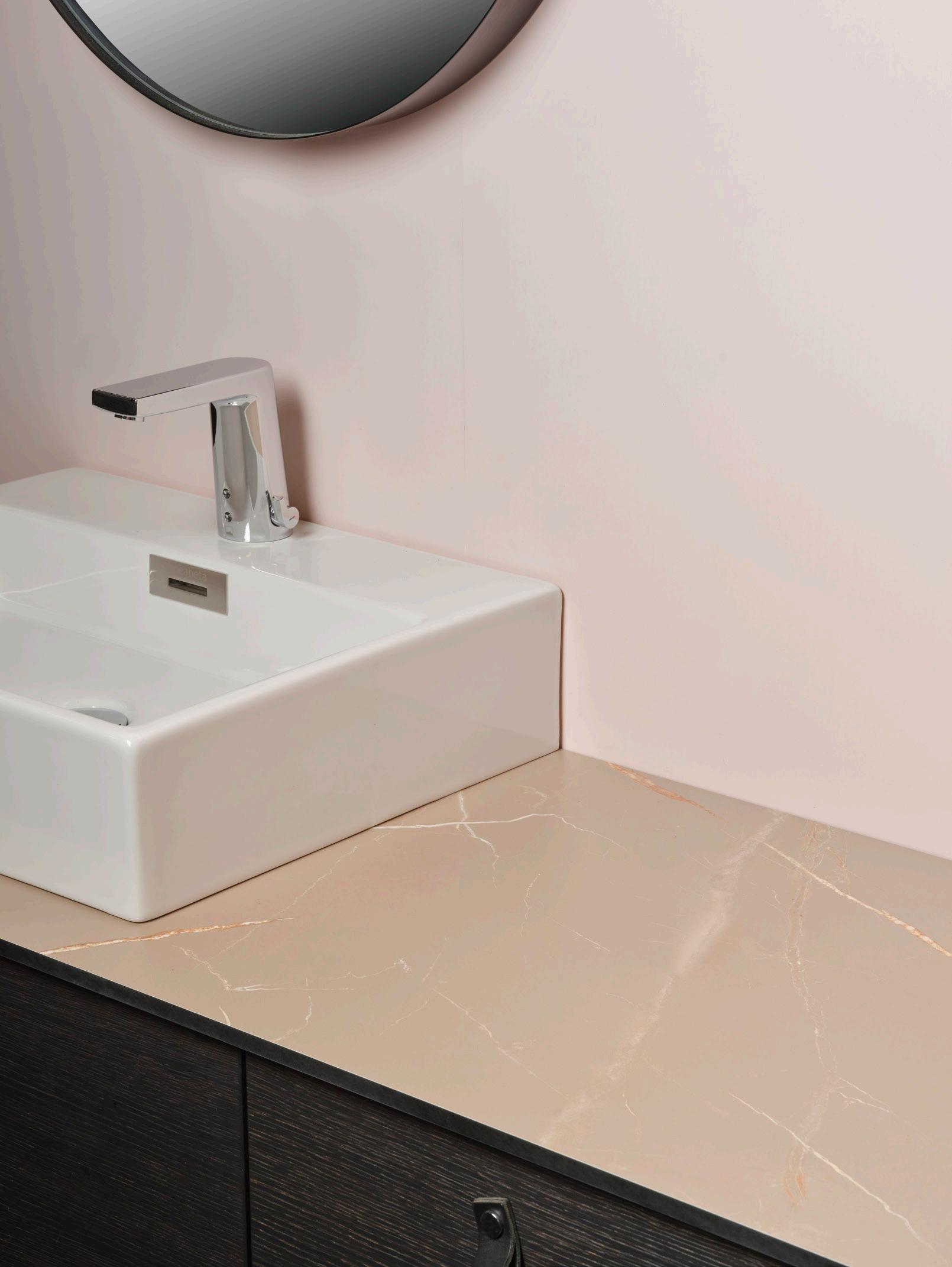 Enten det brukes til benkeplater og bakvegger til kjøkken eller bad gir kompaktlaminat et moderne og estetisk utseende.