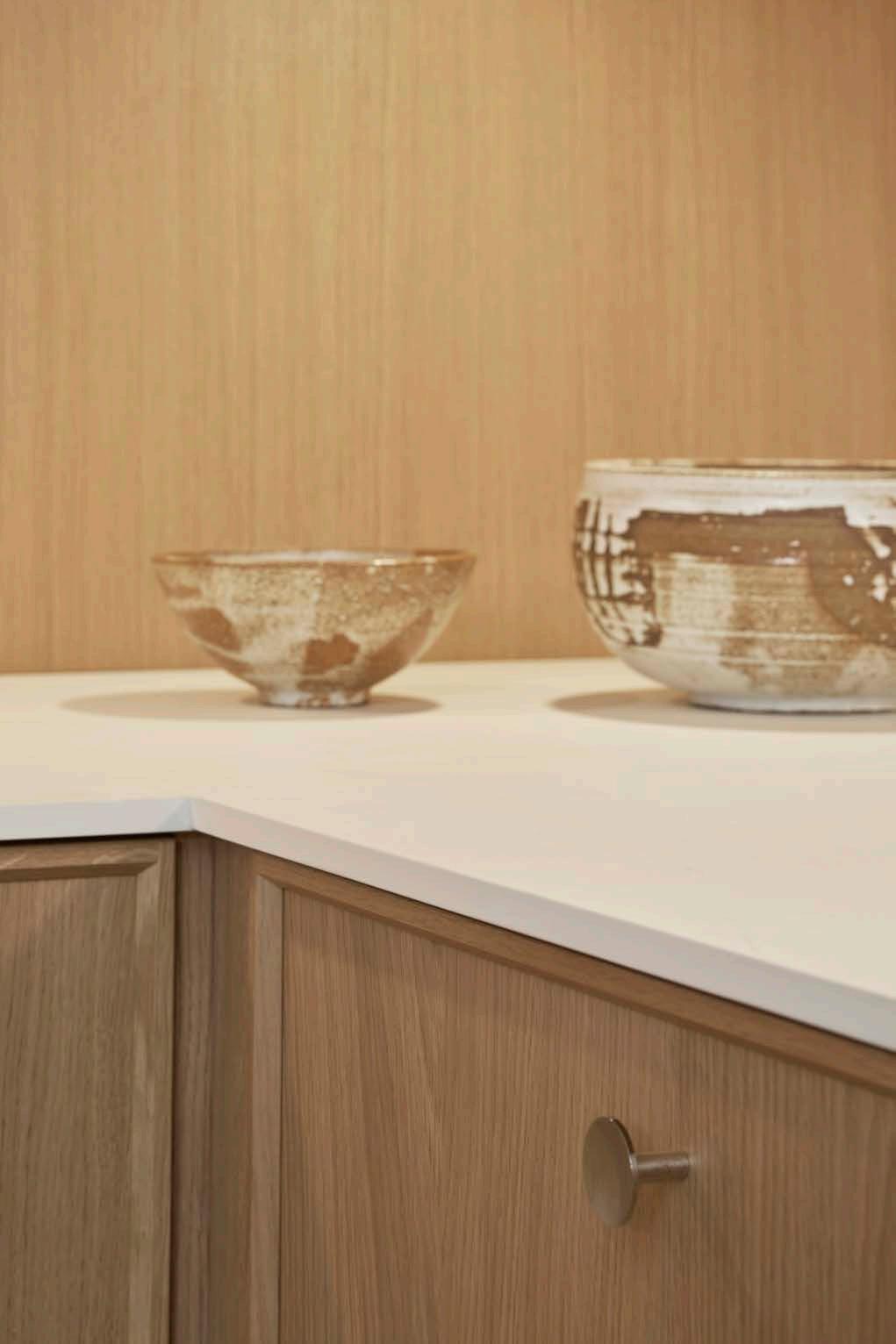 Overskap uten grep men med utkastere på dørene gir et rolig uttrykk.