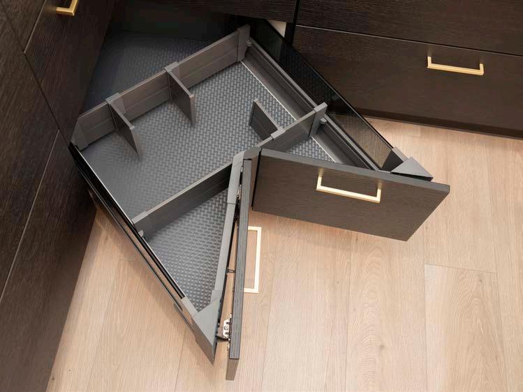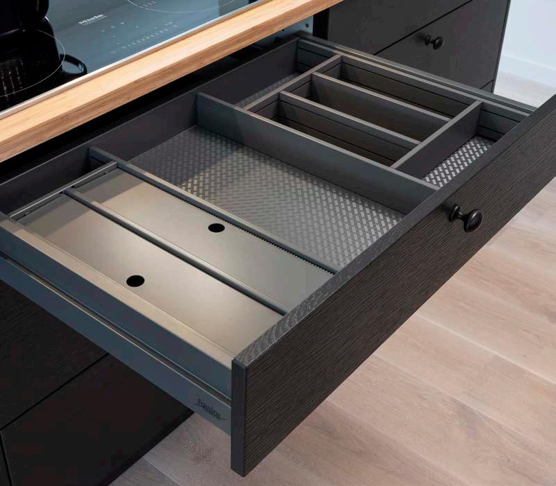 Skuffene har demping, kjører lydløst og tåler stor vekt-belastning. Våre innredningsdetaljer er dessuten fleksible og kan enkelt tilpasses dine behov.