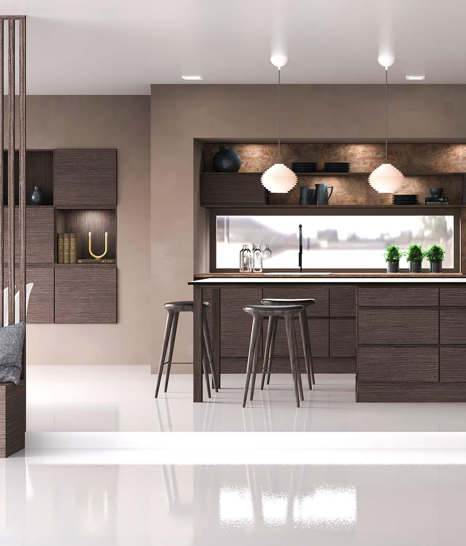 Linea Eik, en elegant og moderne modell med en overflate i børstet eikefiner og gripelister i heltre eik.