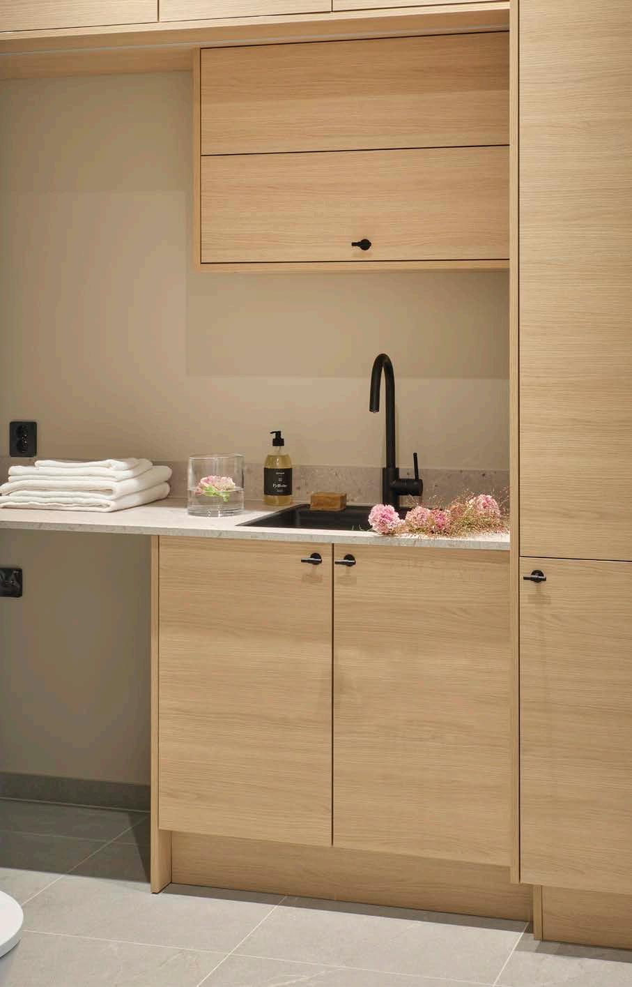 Elin ville ha et praktisk og funksjonelt kjøkken; rommet skulle brukes, ikke bare være pent å se på. Kjøkkenet inneholder mye utstyr, og hos kokken er hjørneskuffer en viktig detalj.