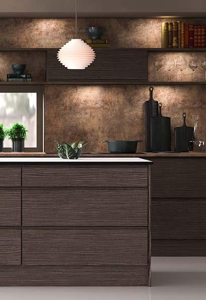 Alle våre Dekormodeller i melamin med en overflate som gir en følelse av ekte tre.