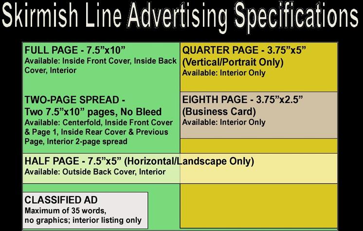 Disclaimer: The North-South Skirmish Association does not guarantee, warrant, or endorse any product or service advertised in this publication. The publisher also does not guarantee the safety or effectiveness of any product or service illustrated, mentioned, offered, or advertised herein. The publisher does not assume responsibility as to whether or not products or services advertised in this publication comply with all state or local laws which may be applicable in regard to the purchase or usage of such products or services.