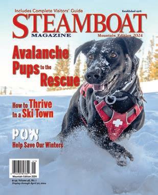 The summer edition will be published in May 2025. For advertising rates and subscription information write: Ski Town Media, Inc., P.O. Box 770456, Steamboat Springs, CO 80477. Phone: (970) 871-9413. Website: www.SkiTownMedia.com. No portion of the contents of this publication may be reproduced in any manner without the written permission of the publisher. © 2024 Ski Town Media, Inc. All rights reserved. ISSN 2166-9252