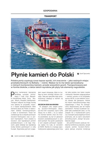 Polskie porty uzyskują coraz lepsze wyniki, ich znaczenie – jako ważnych miejsc przeładunkowych na Bałtyku – rośnie. Wpływ na to ma także sprowadzany z różnych kontynentów kamień, przede wszystkim granit. Transportowany jest w formie bloków, a także takich wyrobów jak płyty lub elementy nagrobków.