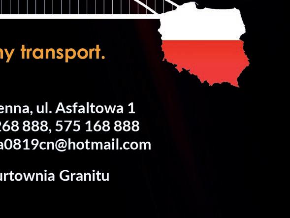 R E K L A M A Cała branża w jednym miejscu 23-25 LISTOPADA 2022 GRANIT COLOR ® RODLEW KONTAKT: Hanna Mickiewicz Tel.: +48 513 347 020 | +33 662 963 954 mail: hm.tarngranit@orange.fr Beauty Dark Acropolis Red Green Savana Pannafragola New Jasmine Yosemite Falls Stoney Pink Himalaya White Antartic White Z FRANCJI: TARN drobne i grube ziarno TARN ciemny royal ZAPRASZAMY! Hala 8A stoisko nr 14 20-23.11.2019 MIREXPORT EGZEMPLARZ BEZPŁATNY reklama u nas? To proste! www.nowykamieniarz.pl LISTOPAD / GRUDZIEŃ 7 (28)/2022 ISSN 1899-3419