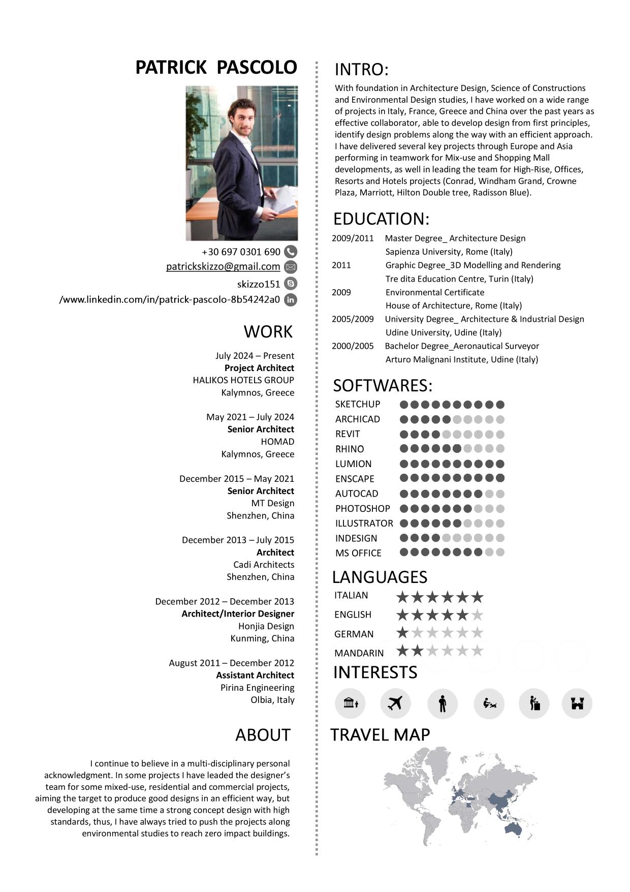 With foundation in Architecture Design, Science of Constructions and Environmental Design studies, have worked on a wide range of projects in Italy, France, Greece and China over the past years as effective collaborator, able to develop design from first principles, identify design problems along the way with an efficient approach. have delivered several key projects through Europe and Asia performing in teamworkfor Mix-use and Shopping Mall developments, as well in leading the team for High-Rise, Offices, Resorts and Hotels projects (Conrad, Windham Grand, Crowne Plaza, Marriott, Hilton Double tree, Radisson Blue).