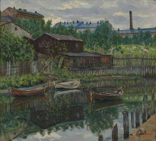 Staden er ikkje nærare identifisert, og Ivar kan ha laga måleriet utan å ha brukt eit konkret motiv. Foto: Martin Rustad Johansen. I privat eige.
