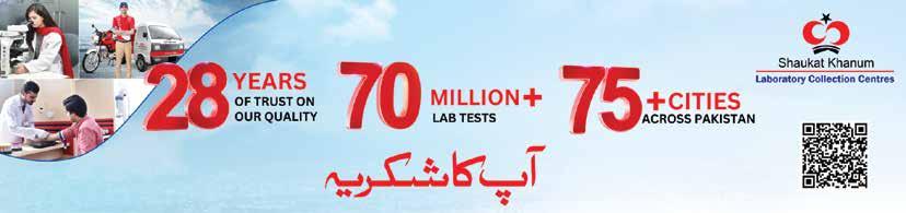 Please Deposit your Zakat, Sadqat and Donations at any of our Regional Offices given below Email us on communications@skm.org.au to switch to a digital copy of our newsletter - you can also opt to receive both a print and a digital copy Published by Media & Communications Department - Shaukat Khanum Memorial Cancer Hospital and Research Centre 7 A Block R-3, Johar Town, Lahore Pakistan | Tel +92 423590 5000, Ext 7150 | UAN 111 155 555 Email: communications@skm.org.pk | www.shaukatkhanum.org.pk 2023 Shaukat Khanum Memorial Cancer Hospital and Research Centre. All Rights Reserved. No part of this publication may be used in any form without prior written approval from Media & Communications Department. Thank you to our sponsors and supporters Hope Zakat Edition 2023 www.shaukatkhanum.org.pk Remember, revenue generated from our lab testing services is spent on the treatment of deserving cancer patients Lahore 7A Block R-3 Johar Town +92 42 3590 5000 Peshawar 5B Sector A2 Office Enclave Phase V, Hayatabad +92 91 588 5000 Karachi DDCH1 1st Street Phase VII, Ext, DHA +92 21 3587 2573 Islamabad 2 Royal Centre 106 Fazal-e-HAq Road Blue Area +92 51 234 8275 Multan Hotel Ramada 76 Abdali Road +92 61 478 3344 Faisalabad Office no. 150 Center Point Plaza Jarranwala Road +92 300 840 1448 Sialkot Soni Square Khadim Ali Road +92 52 325 8326 You can also call us on 0800 11 555 or visit our website for more information on how to donate