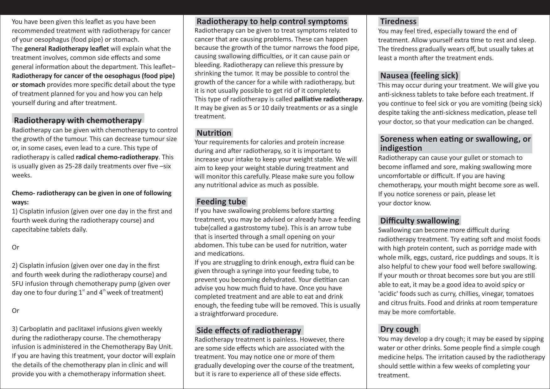 Radiotherapy for Cancer of Oesophagus or Stomach | English