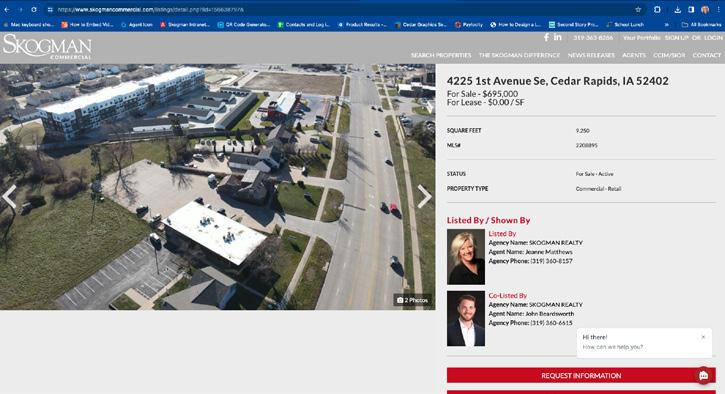 + With thousands of property searches annually, SkogmanCommercial.com, is a Corridor leading tool that highlights client listings and maximizes exposure using electronic flyers, email campaigns, and more.