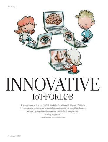 INNOVATIVE IoT-FORLØB Forberedelserne til et nyt “IoT i folkeskolen”-forløb er i fuld gang i Odense Kommune og ambitionen er, at underbygge elevernes teknologiforståelse og kreative tilgang til problemløsning, med IoT-teknologien som omdrejningspunkt. Af Mark Sørensen • Illustration Otto Dickmeiss