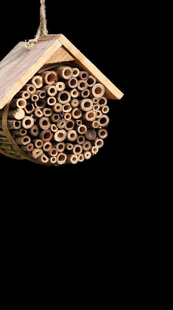 Göra om en del av gräsmattan till äng Bygga bihotell av olika slag.