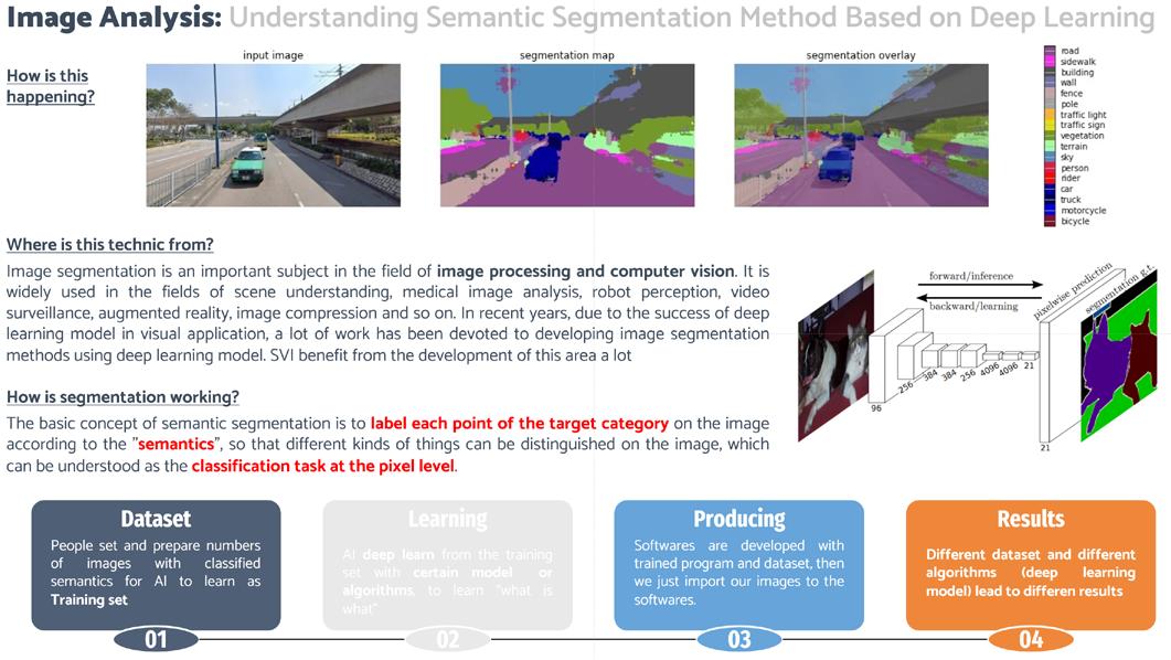 The basic concept of semantic segmentation is to label each point of the target category on the image according to the "semantics", so that different kinds of things can be distinguished on the image, which can be understood as the classification task at the pixel level (Xiaobaixueshijue, 2021).