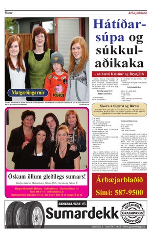 Skora á Sigurð og Birnu Kristín Pétursdóttir og Brynjólfur Smárason, Viðarási 77, skora á Sigurð Grímsson og Birnu Pálsdóttur, Þingási 26, að koma með girnilegar uppskriftir í næsta blað. Við birtum uppskriftir þeirra í næsta Árbæjarblaði sem kemur út 7. júní. 75 gr. smjör. 75 gr. hveiti. 1 dós niðursoðnir tómatar. 1-2 msk. tómatkraftur. ½ - 1 flaska óáfengt hvítvín. 1 tsk. oregano. ½-1 tsk. rauður pipar, ef þið viljið súpuna sterka þá 1 tsk. 2 teningar fiskikraftur. 2-3 dropar Tabasco. Smá sojasósa, ef eitthvað vantar þá setja meira af sojasósu. 2 stilkar selleri. 3-4 rif hvitlaukur. 1 lítinn lauk. 4 gulrætur. 1 peli rjómi. Humar og hörpudiskur sett út í ca 1 líter af sjóðandi vatni og látið sjóða í 2 mínútur. Fiskurinn sigtaður frá og soðið notað til að baka súpuna upp, 75 gr. smjör og 75 gr. hveiti. Hvítvín, niðursoðnir tómatar, tómatkraftur, krydd ásamt grænmeti sett út í. Látið malla í ca hálfa klukkustund, því lengra því betra. Því næst er rjómanum hellt út í. Í lokin er humarinn og hörpudiskurinn settur