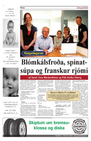 2-3 msk. Grand Marnier líkjör. Smátt skorið gott súkkulaði, 1 tsk. pr. disk. Þú upplifir þig sem Parísarbúa aðeins eitt augnarblik því rétturinn hverfur af disknum á örskotstundu. Sýrðum rjóma, sykri og venjulegum rjóma blandað saman lauslega. Sett inn í ísskáp til að kælast og stífna aðeins. Hreinsið og skerið jarðarber í bita. Setjið jarðaÁsta Bárðardóttir og Páll Kolka Ísberg, Deildarási 4, skora á Marberin í sigti og SPÍNATSÚPA íu Ýr Valsdóttur og Rúnar Sigurðsson, Melbæ 30, að koma með handmerjið með (fyrir fjóra) uppskriftir í næsta matarþátt Árbæjarblaðsins. Við birtum gómskeið gegnum 300 gr. Spínat. sætar uppskriftir þeirra í næsta Árbæjarblaði sigtið þar til um 50 gr. smjör. sem kemur út í september. það bil ein msk. af 1 sítróna, safinn. hrati er eftir. (Með 1 grænmetisteningþví að setja jarðarberin á þennan miðjuna ogstráið rifnum parmesan ur. hátt gegnum sigti, þá skilur sósan ostiyfir. pipar, salt. sig ekki.) Bætið flórsykri og Grand Marnier út í og smakkað til (bragð FRANSKUR RJÓMI MEÐ Ofan á: jarðarberja er mismunandi eftir ársJARÐABERJASÓSU (fyrir fjóra) Sýrður rjómi 17%. tíma og þarf stundum örlítið meira Parmesan ostureftir smekk. af flórsykri og Grandinu). Franskur rjómi: Berið fram á hvítum diskum með 1½ dós sýrður rjómi 17%. Hér kemur vítamín- og andoxunhvítan hrauk af rjóma í miðjunni, 3 msk. sykur. arbomba sem fær þig til að fyllast rauðu sósuna allt í kring og sáldrið 0,2 dl. rjómi (ekki þeyttur). þrótti. Hitið smjörið í potti. Spínatið fínu niðurskornu súkkulað yfir. Jarðaberjasósa: er sett út í og mýkt við vægan hita í 5 Verði ykkur að góðu, 1 askja fersk jarðaber 250-300 gr. mínútur með loki á pottinum. Bætið Ásta og Páll 3 msk. flórsykur. tveimur dl. af vatni út í og sjóðið varlega upp. Kryddið til eftir smekk (passið upp á fínlegt bragð blómkálsins). Hellið maukinu í rjómasprautu (eitt þrýstihylki er notað). Sprautað í bolla og borið fram með ristuðu brauði vættu í góðu balsamico. Hægt er að nota ýmsar aðrar grænmetistegundir í stað blómkáls s.s. gulrætur, brokkolí, sellerí eða spínat.
