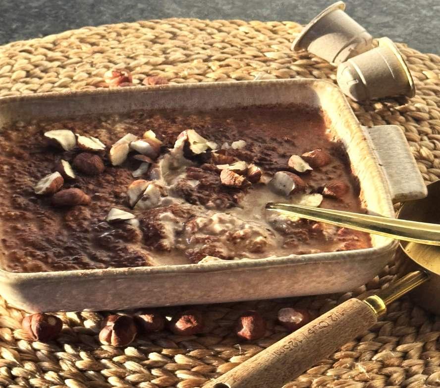 1 bolli grÌsk jÛg˙rt me kaffi og s˙kkula i brag i. 1ñ2 tsk. hunang e a ˆnnur sÊta. Sm· kakÛduft og nokkrar saxa ar heslihnetur til a toppa.