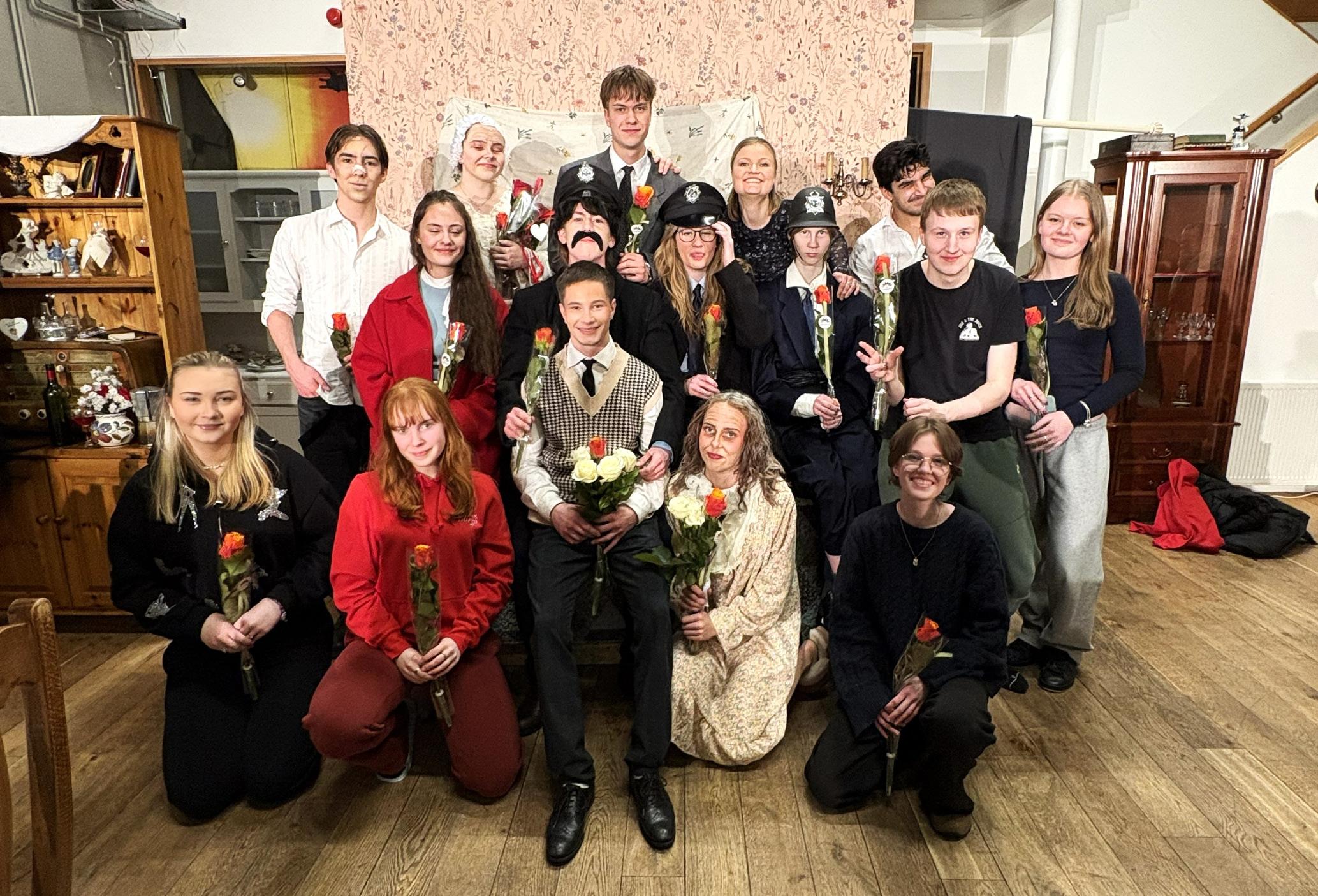 Í vetur hafa félagar í leikfélagi Borgarholtsskóla, Appolo, staðið í ströngu við æfingar á leikverkinu Blúndur og blásýra eftir Joseph Kesselring í leikstjórn Báru Lindar Þórarinsdóttur. Uppfærslan var frumsýnd þriðjudaginn 10. mars við frábærar viðtökur áhorfenda í Hlöðunni í Gufunessbæ. Verkið var fyrst sýnt á Broadway árið 1941 og kvikmyndað á svipuðum tíma. Það hefur síðan verið fært margoft á svið við góðan orðstír. Sagan er stórskemmtileg en þar segir af fjörugum systrum á áttræðisaldri, Abbý og Mörtu, sem af einskærri góðmennsku eitra fyrir herramönnum til að lina þjáningar þeirra. Þegar fændi þeirra, leikhúsgagnrýnandinn Mortimer, finnur lík í gluggabekknum hjá þeim fer í gang atburðarás þar sem hvert spenghlægilega atvikið tekur við af öðru. Næstu sýningar verða 23., 24. og 25. mars og er hægt að nálgast miða á Tix.is. Hér er komið fyrirtaks tækifæri fyrir unnendur leiklistar að njóta menningar og eiga bráðskemmtilega kvöldstund í nærumhverfi sínu.