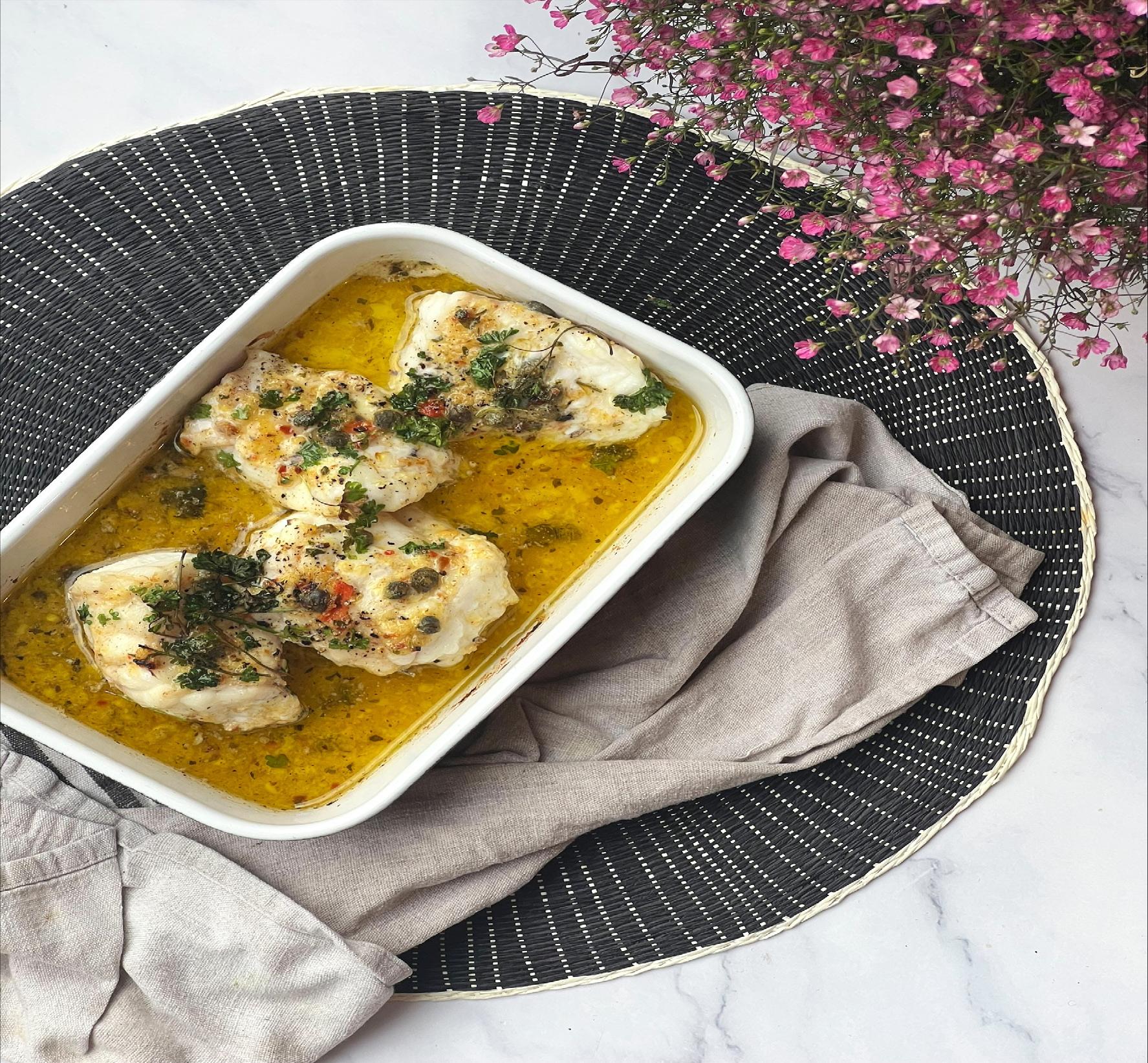 Skötuselurinn er bakaður í sósu með hunangi, sinnepi og sítrónu sem gefur ljúft og gott jafnvægi milli sætu og sýru. Hentar vel bæði dags daglega og við hátíðleg tilefni.