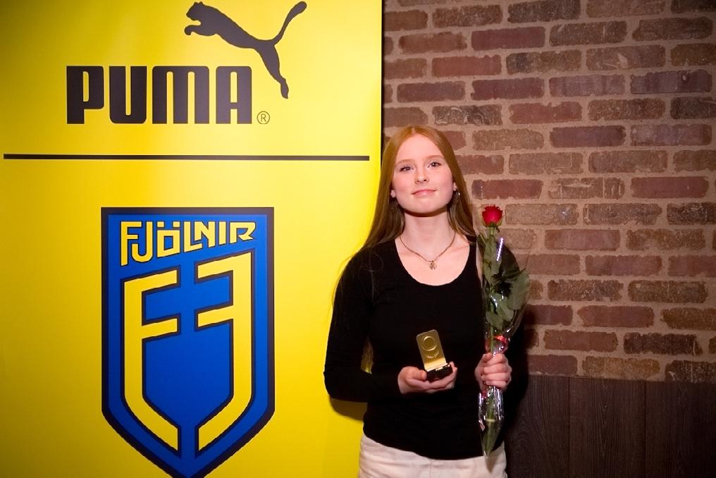 Knattspyrnukona ársins: Elvý Rut Búadóttir. Elvý Rut Búadóttir er uppalinn leikmaður hjá Fjölni. Elvý er öflugur miðvörður sem hefur verið lykilmaður í liðinu lengi en hún hefur spilað 179 leiki fyrir Fjölni og skorað 2 mörk. Hún smitar út frá sér jákvæðni og vinnusemi og er alltaf tilbúin að gefa allt sem hún á inn á vellinum. Elvý er frábær leikmaður og